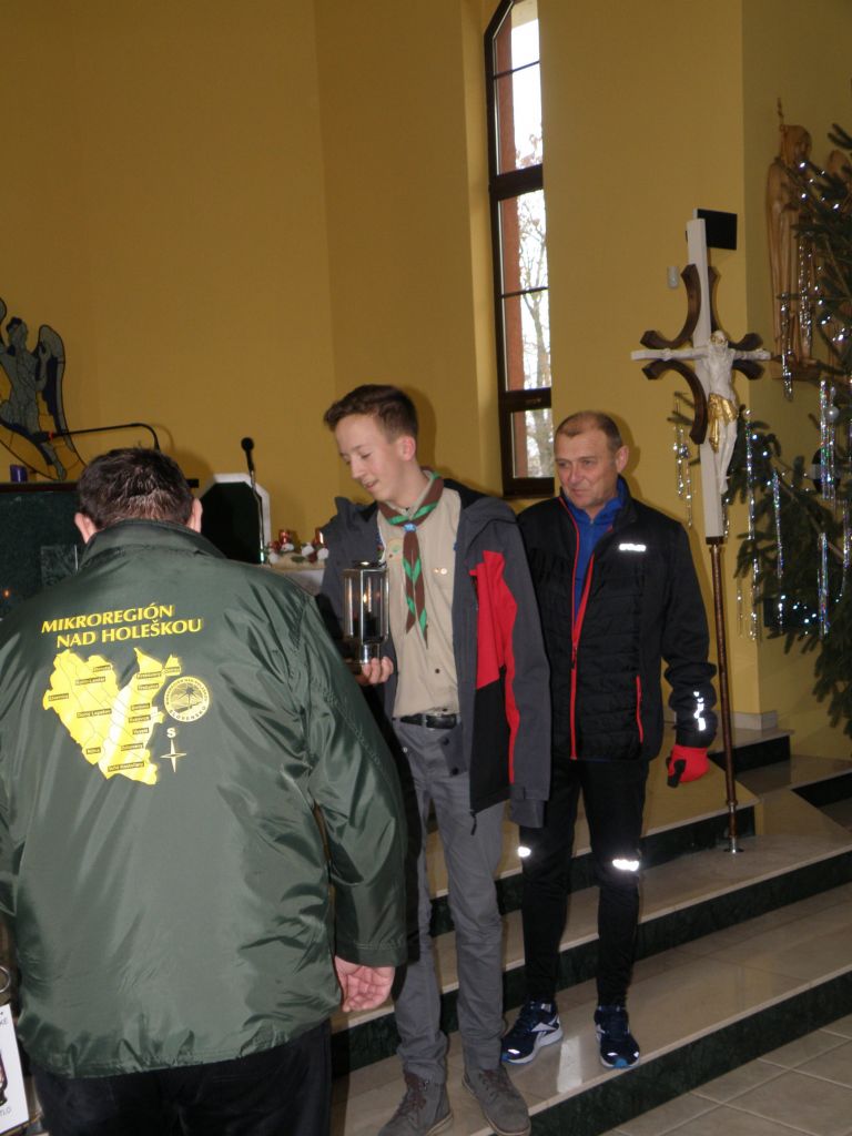Roznášanie Betlehemského svetla do obcí mikroregiónu a jeho okolia bežcami, skautami, spevokolom "Úsmev" z Dubovian a zástupcami Mikroregiónu nad Holeškou.